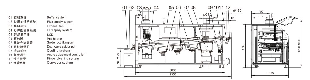 ●錫爐系統,內膽采用特殊材料,內表面防腐蝕處理。(新型噴口固定方式,便于裝卸;自動導流裝置,便于收集錫渣,波峰形狀可調節)錫爐溫度控制精度±2℃,錫爐進出、升降電動手動均可,操作方便。